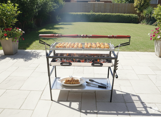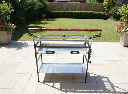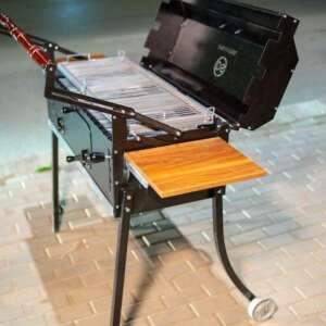 * مستويات للنار (الرفع والخفض): معاك ذراع يدوي بيخليك تتحكم في قرب وبعد الأكل عن الفحم، يعني هتسوي اللحمة “على الهادي” أو تديها “السيار” المظبوط في ثواني. ↕️🔥